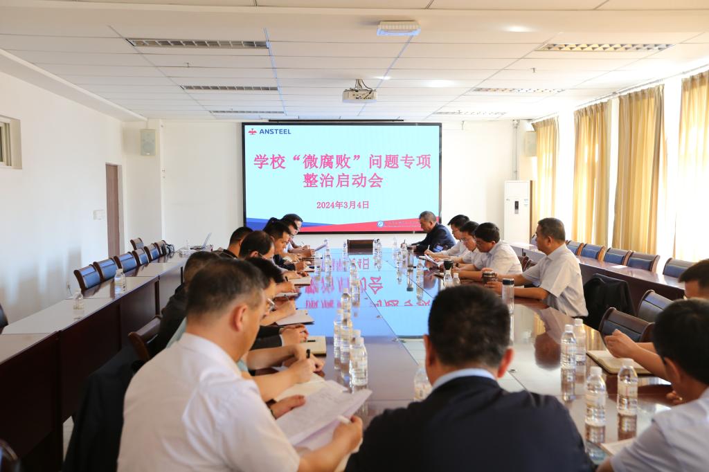 (综合管理部马琪)为认真落实《攀钢集团党委开展“微腐败”问题专项整治工作方案》(攀钢委发〔2024〕2号)工作部署,推动整治“靠校吃校”问题走深走实,重拳整治群众身边的不正之风和“微腐败”问题,切实增强职工群众的获得感和满意度,学校党委决定在全校范围内开展“微腐败”问题专项整治。3月4日上午,学校党委在一会议室召开“微腐败”问题专项整治启动会议,部署安排专项整治工作。党委书记宋明华出席会议并提出要求,党委副书记、纪委书记陈勇主持会议传达集团公司纪委会议精神并提出工作要求,校领导王光涛、龙华洲、满海波出席会议。
