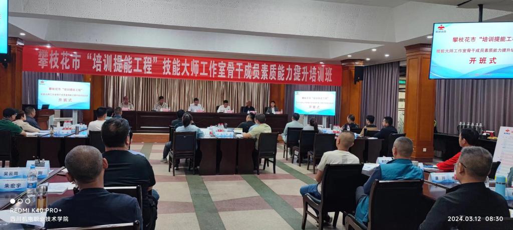(继续教育部李春萍)3月12日,由学校承办的攀钢集团工程技术有限公司技能大师工作室团队工作能力提升培训班,在攀枝花隆庆大酒店开班。来自攀钢工程技术公司各技能大师工作室的31名技能大师、技术能手、优秀青年技术骨干及工作室相关成员参加培训。上午,该班举行开班仪式,副校长龙华洲、攀钢工程公司工会主席周永利、攀枝花社会保障局副局长徐洪江出席开班仪式,强调要珍惜机会,努力学习,切实提高综合素质能力,为新攀钢建设、攀枝花市经济社会发展做出更大贡献。