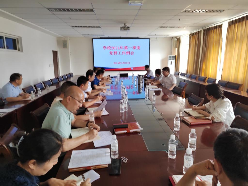 (综合管理部马琪)3月19日下午,新学期伊始,学校党委组织召开2024年第一季度党群工作例会,总结学校党群第一季度工作,部署安排第二季度工作。党委书记宋明华主持会议,强调要围绕学校中心工作、重点工作充分发挥各级党组织的战斗堡垒作用和党员先锋模范作用,确保各项工作目标实现。