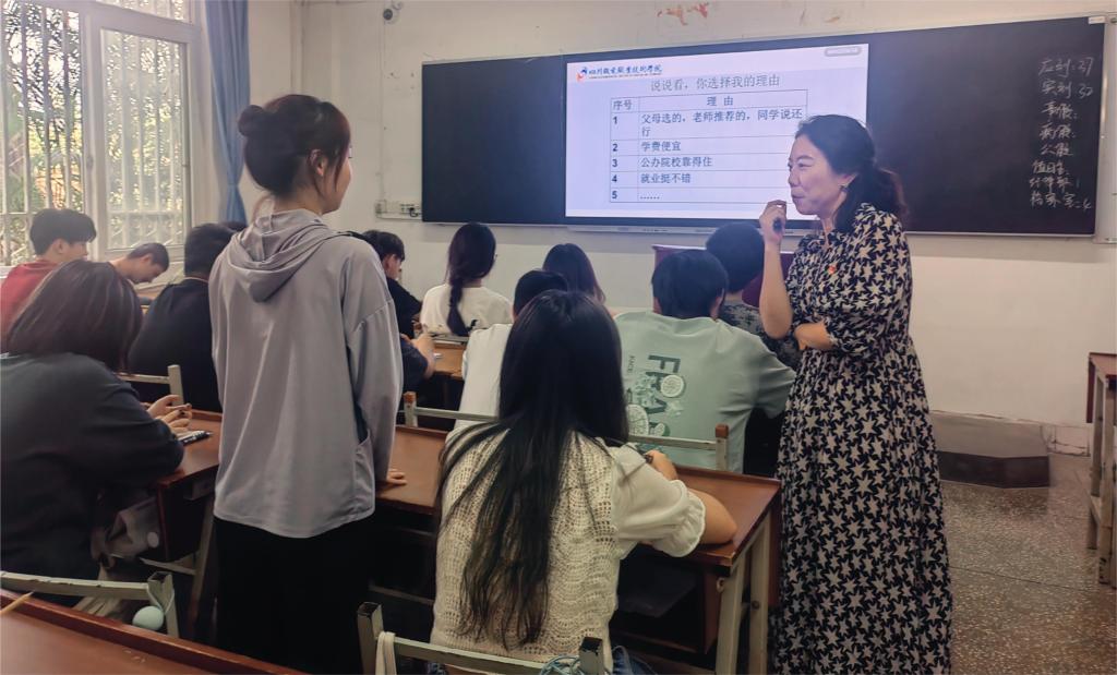 “你选择学校的理由是什么?”“你认为大专生的优势在哪里?”“在学历方面你有什么打算和计划吗?”“你要怎么提升自己的竞争力?”讲座从与学生交流开始。姚春早针对学生回答展开讲座,她用“三步进阶法”——学习、实践、就业,帮助学生树立学习目标、端正学习态度、提升综合素养。