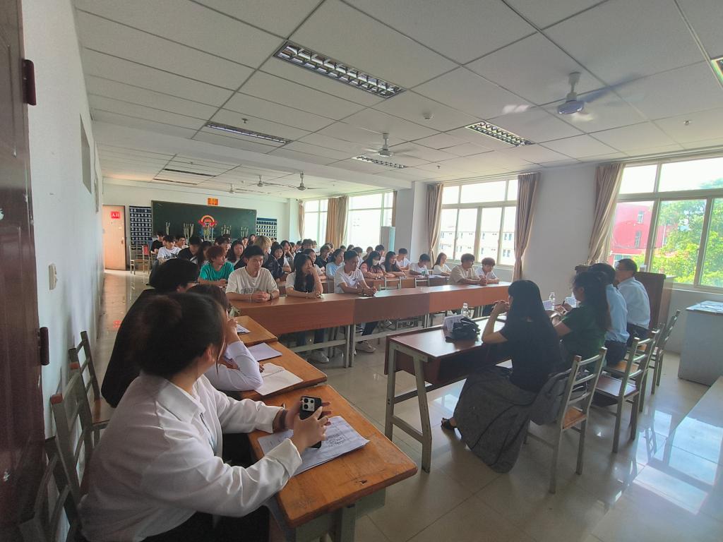 (管理学院马千秋)5月8日下午,管理学院在马家田校区组织召开2023-2024学年第二学期全校公共课程师生座谈会,倾听同学们的声音,就全校思政课、英语、心理健康教育等公共课程的开设、教学和管理工作进行交流,了解有关课程教学状况和学生学习情况,促进提高公共课程教学质量和教学持续改进。该院负责人、各教研室负责人、来自全校各二级学院的学生代表70余人参加座谈会。