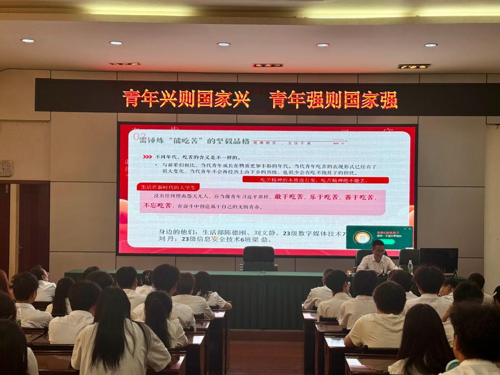 (信息工程学院刘晓红 丁梅 学生刘洋)为进一步加强大学生思想政治教育,培养大学生良好的人格和品行,提升同学们的民族自豪感和爱国情怀,激励青年学生挺膺担当,积极进取,6月19日下午,党委副书记陈勇深入信息工程学院为师生上党课,作《青年兴则国家兴 青年强则国家强——新时代的青年人如何有所作为》专题讲座。信息工程学院150余名师生参加讲座。