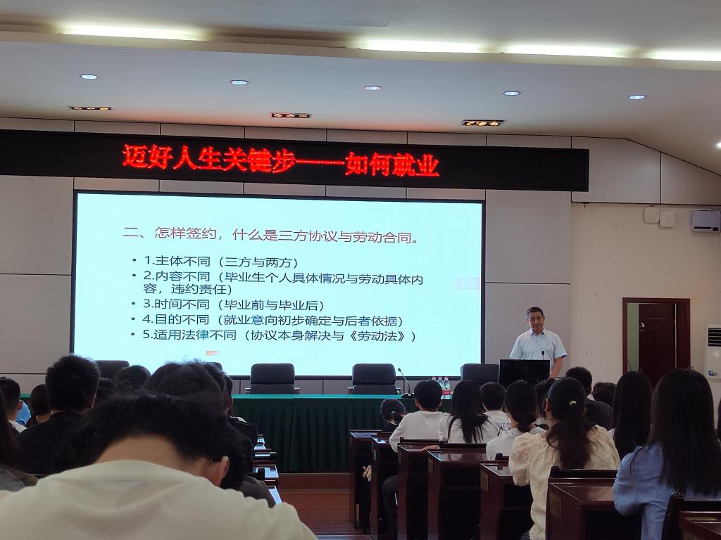 (管理学院何光辉 学生钱坤)为进一步促进22级学生高质量就业,帮助同学们了解就业形势,认清自己的优势和不足,正确应对挑选,提高就业质量,6月25日上午,校长王光涛深入管理学院,作《迈好人生关键步——如何就业》专题讲座。管理学院140余名师生参加讲座。
