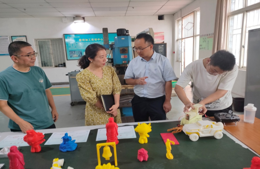 姚春早高度评价社团成员所取得的成绩,鼓励他们继续保持学习的热情,不断提高专业技能。在交流中,得知社团成员在全国第五届“慧阳杯”工业机器人虚拟拆装线上大赛中获得二等奖2项,三等奖1项,以及在国家A类赛事睿抗机器人开发者大赛的增材制造、魔力元宝两个项目中获得20余项二、三等奖并入围国赛后,姚春早充分肯定学生机械加工社团的建设和成效。