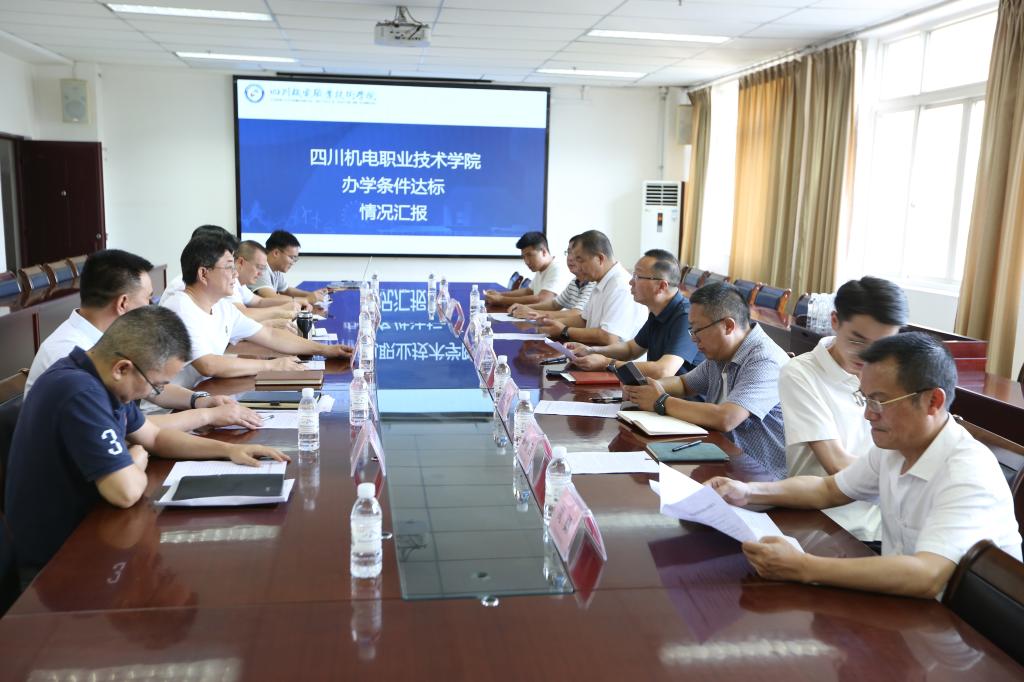 观看学校宣传短片后,副校长满海波代表学校作办学达标情况汇报。他在简单介绍学校50余年办学历程和办学成就后,重点介绍了学校师生比、具有研究生学位教师占专任教师的比例、生均教学行政用房面积、生均教学科研仪器设备值、生均图书等高职学校办学条件重点监测指标的达标情况。指出,在攀钢和攀枝花市的大力支持下,学校办学条件完全符合教育部职业学校办学条件。