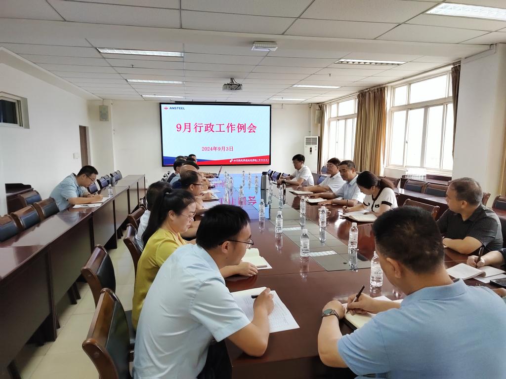 (综合管理部马琪)9月3日上午,学校在一会议室召开9月份行政工作例会,部署安排新学期开学各项工作。党委书记宋明华出席会议宣讲攀钢形势任务并就做好新学期开学安全工作进行强调;校长王光涛主持会议强调要高度重视宏观经济环境对学校各项工作的影响,要针对攀钢当前形势树立信心落实责任做好新学期开学的各项工作,要全力以赴落实好新生入学等重点工作安排,确保学校教学科研平稳有序,确保校园平安。